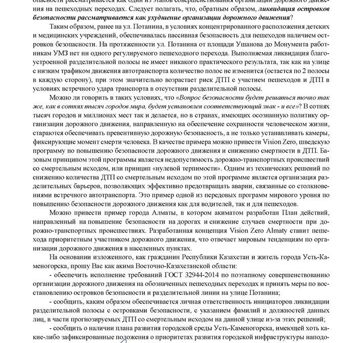 На основании изложенного, как гражданин Республики Казахстан и житель города Усть-Каменогорска, прошу Вас как акима Восточно-Казахстанской области: