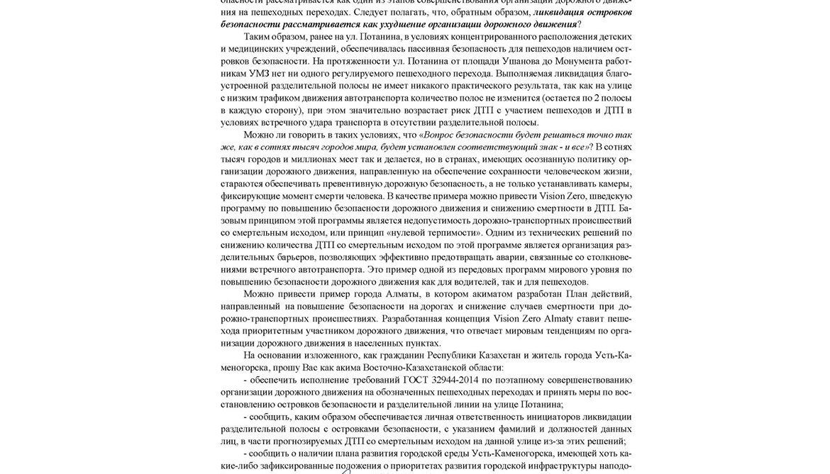 — сообщить о наличии плана развития городской среды Усть-Каменогорска, имеющей хоть какие-либо зафиксированные положения о приоритетах развития городской инфраструктуры наподобие тех, что включены в концепцию Vision Zero Almaty